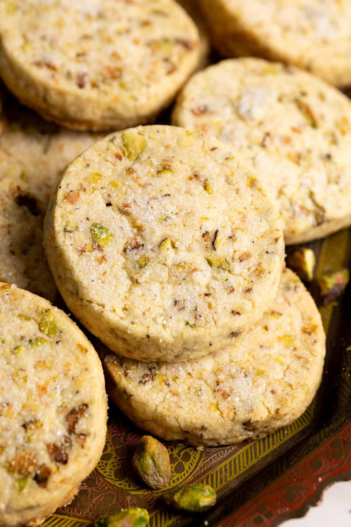 - Storing baked cookies: store your pistachio shortbread cookies in an airtight container at room temp for up to a week.